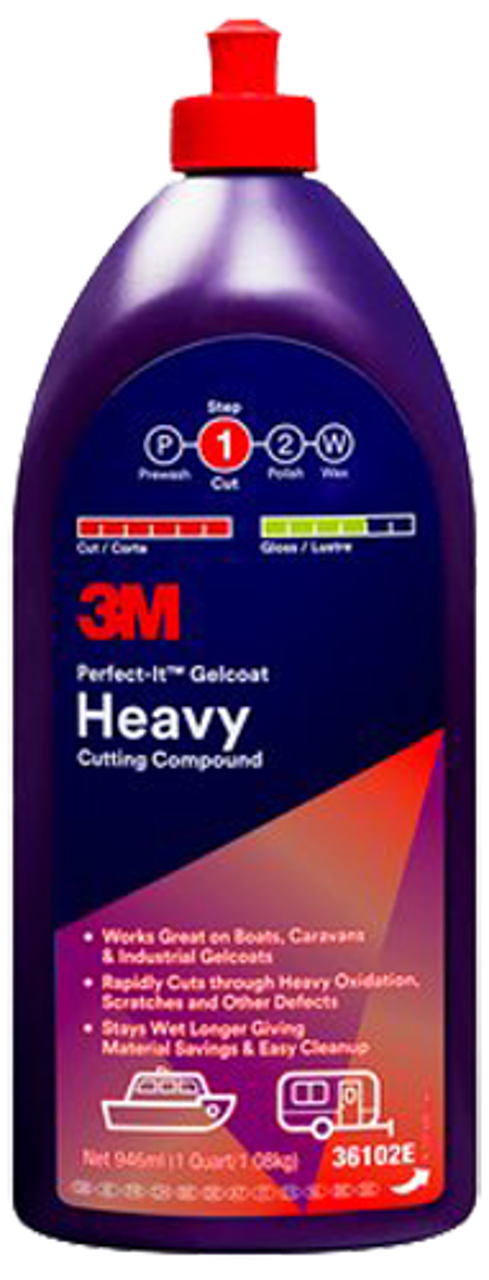 3Mâ„¢ Perfect-Itâ„¢ Gelcoat Heavy Cutting Compound laat boten weer glanzen door oxidatie, krassen, slijtagesporen en andere oppervlakkige beschadigingen te verwijderen. Deze compound is ons snelst werkende polijstmiddel voor gelcoats, verwijdert P600 en fijnere krassen en geeft een hoogglansafwerking die ideaal is om te polijsten of in de was te zetten.